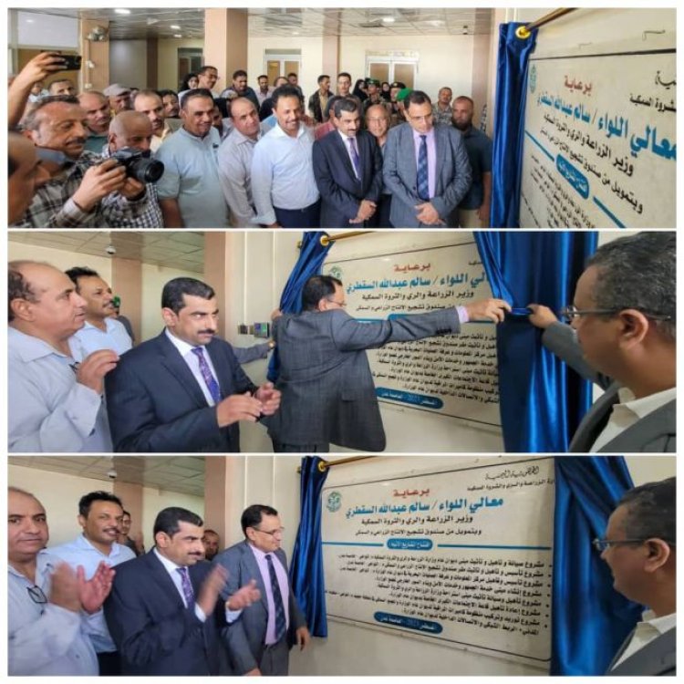 بازاحة الستار عن قائمة المشاريع ايذانا بتدشين افتتاحها رسميا والممولة من صندوق تشجيع الانتاج الزراعي والسمكي، والتي تشمل مشروع صيانة وتاهيل وتأثيث مبنى ديوان عام الوزارة ،ومشروع تأسيس وتأهيل وتاثيث مبنى صندوق تشجيع الانتاج الزراعي والسمكي ،وتأسيس وتاهيل مركز المعلومات وغرفة العمليات البحرية ،وتأهيل وصيانة وتأثيث مبنى استراحة وزارة الزراعة والري والثروة السمكية،ومشروع إعادة تأهيل قاعة الاجتماعات الكبرى،بالاضافة الى مشروع توريد وتركيب منظومة كاميرات المراقبة لديوان الوزارة والمجمع السمكي بمنطقة حجيف ،ومشروع منظومة الدفاع المدني والربط الشبكي للانترنت والاتصالات الداخلية .